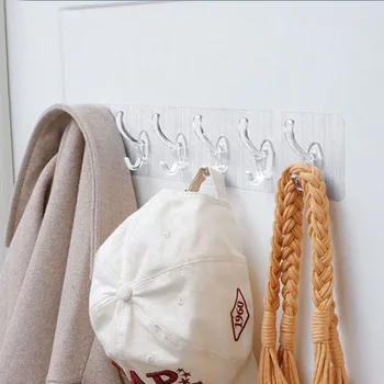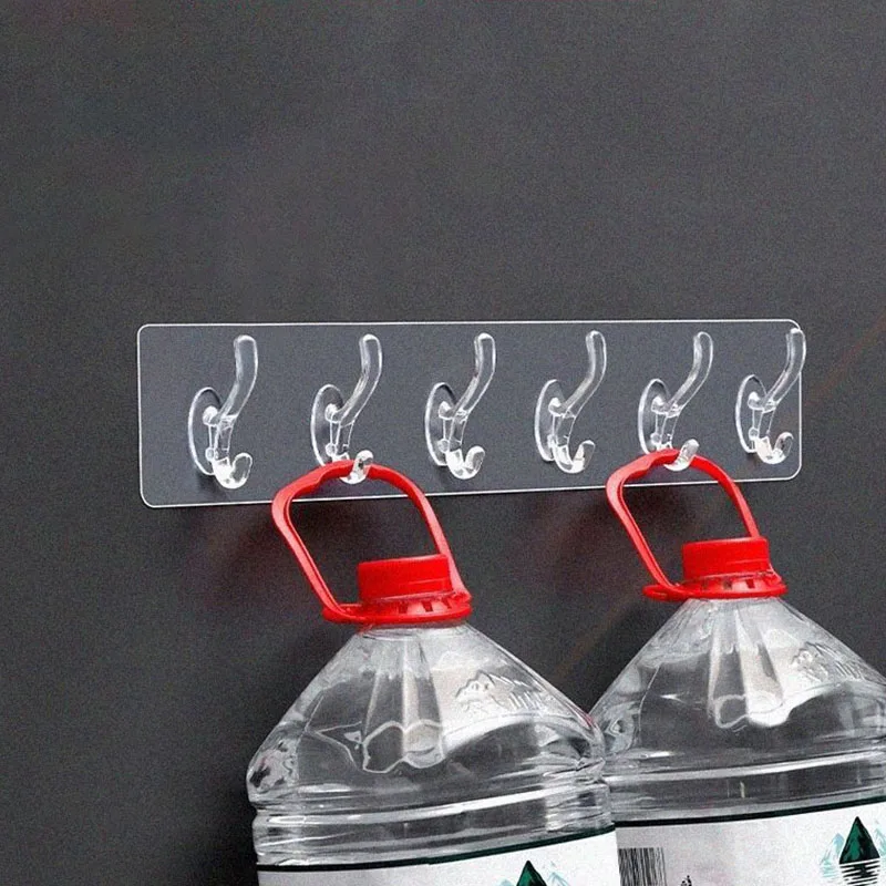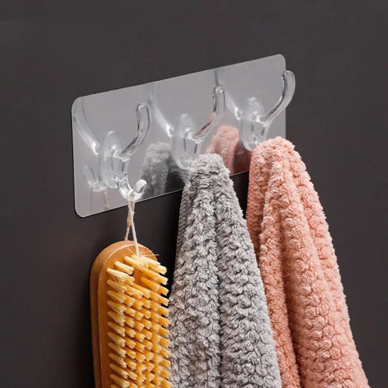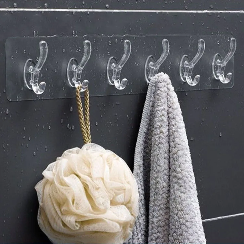 3/6 Hooks Transparent Holder Rack Bathroom Towel Sponge Storage Hanger Living Room Hat Clothes Seamless Hook Organiser
