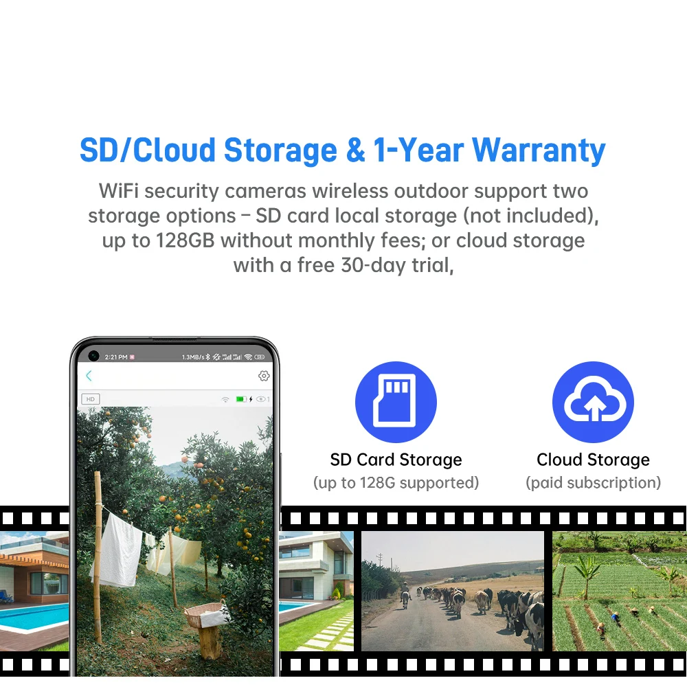 Safeguard your footage with secure cloud storage and/or SD card storage options. Enjoy peace of mind knowing your critical surveillance data is protected, easily accessible for playback, and can serve as invaluable evidence should the need arise.