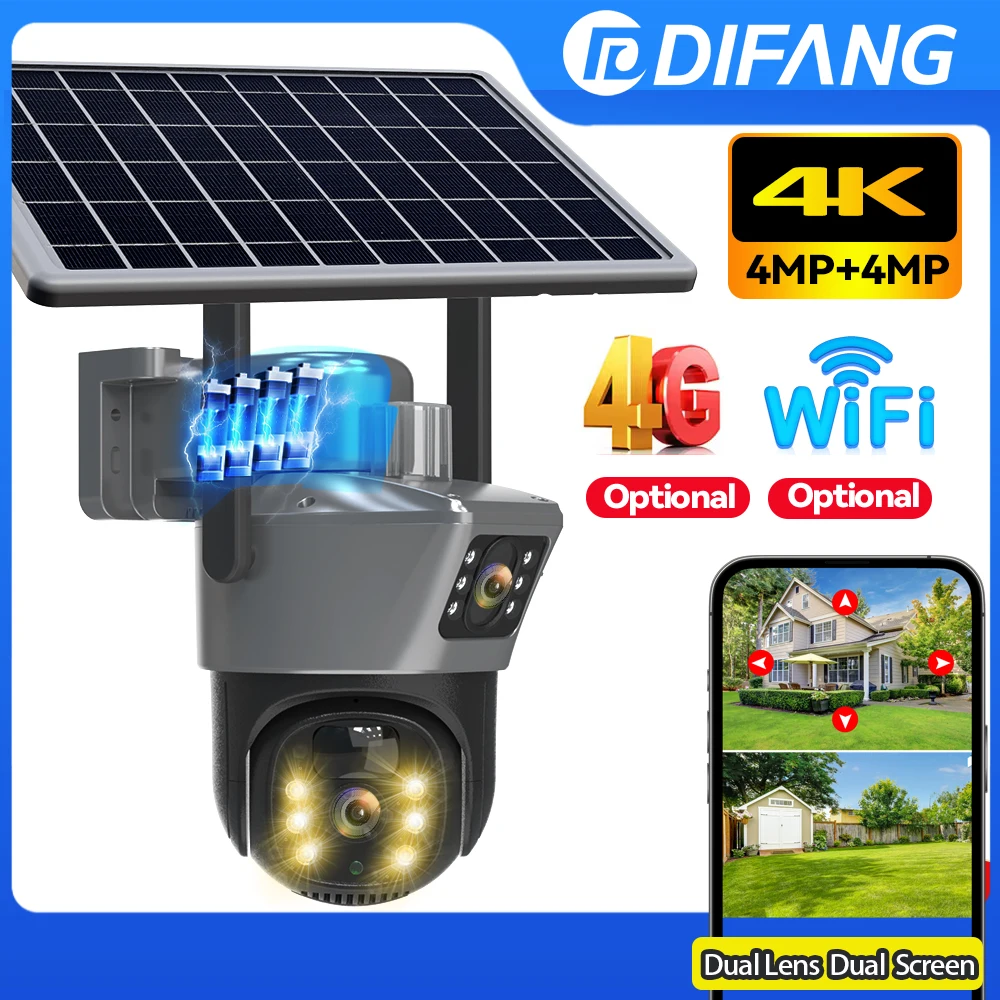 4K 8MP 4G Solar Camera Wireless Security Camera System Dual Lens Dual Screen Battery Solar WiFi IP Camera Surveillance CCTV