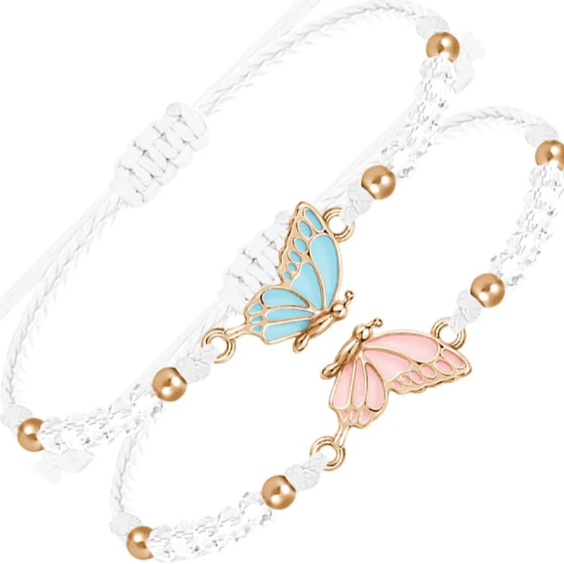 BFF Bracelets for 2-Butterfly Matching Adjustable Best Friends Handmade Friendship Bracelets Jewelry Gifts for Teen Girls Women