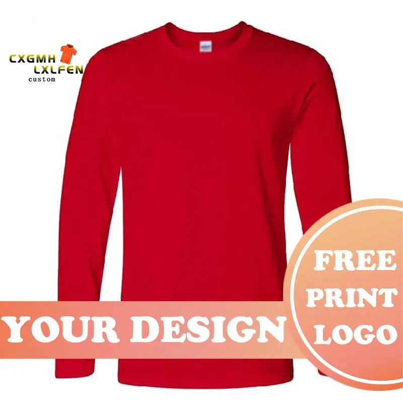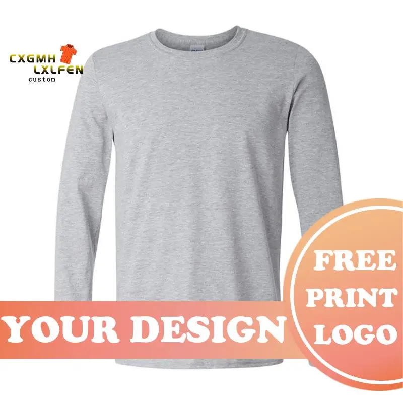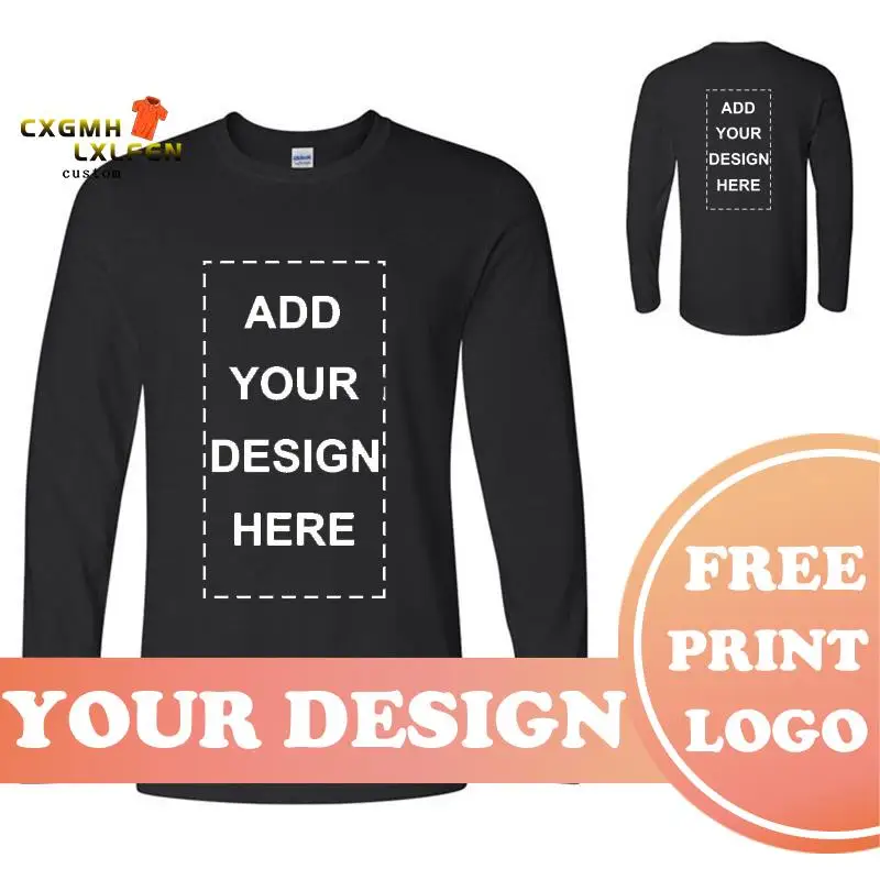 Custom logo cotton t-shirt Spring/autumn men T-shirt home men’s long sleeved O-neck solid color casual T-shirts USA size XS-2XL