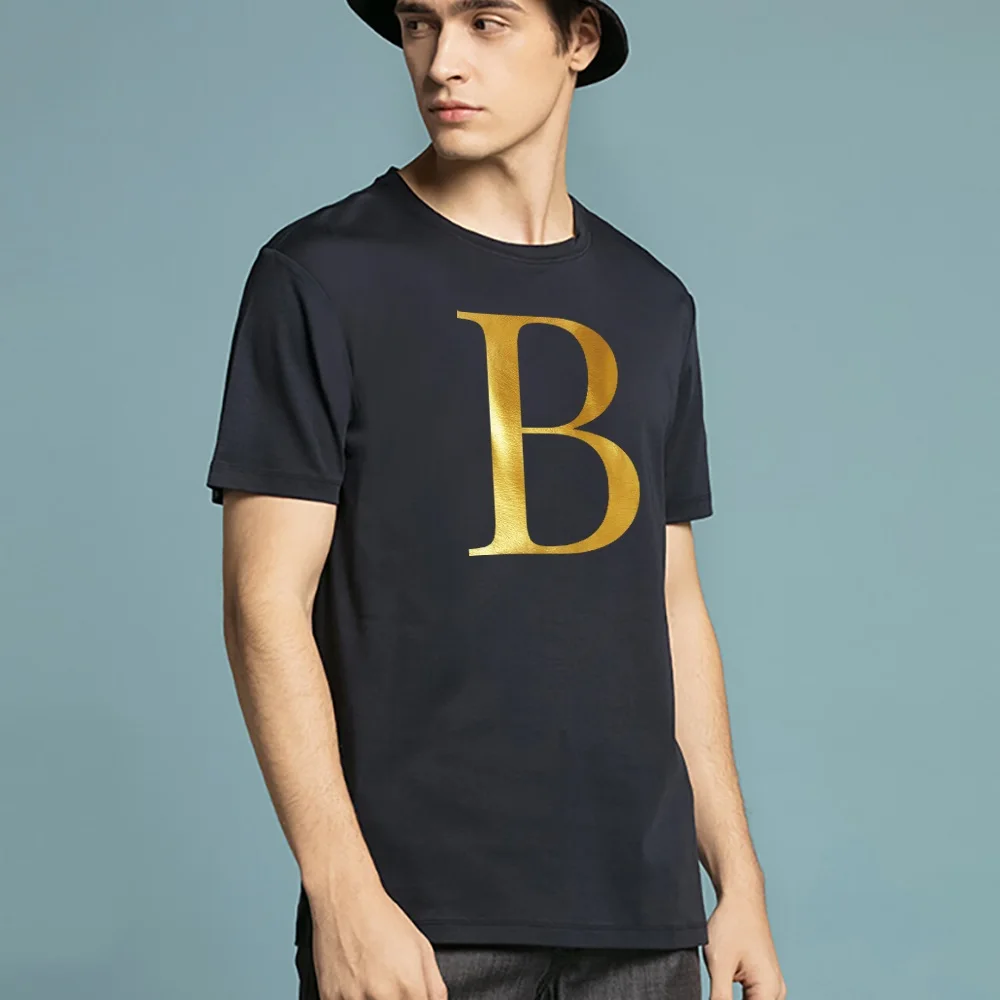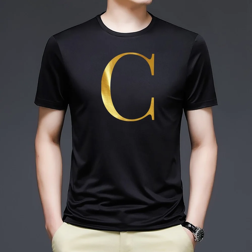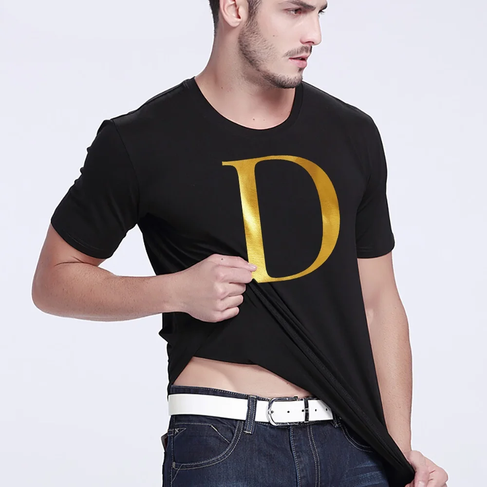 Letter Combination Fashion Men T-shirt Letter Font A B C D E F G Short Sleeve Tops Summer Short Sleeve Black T-shirt Clothing
