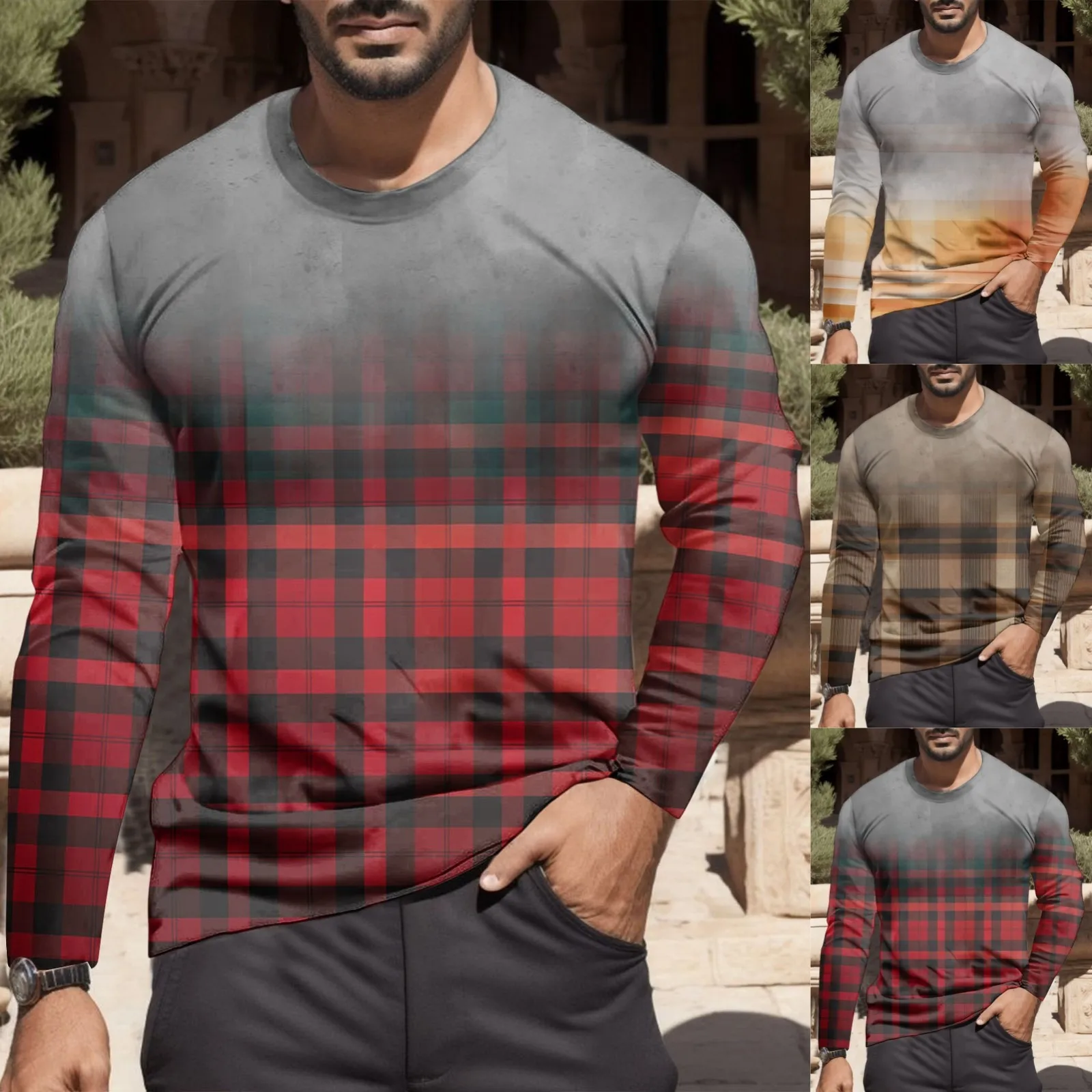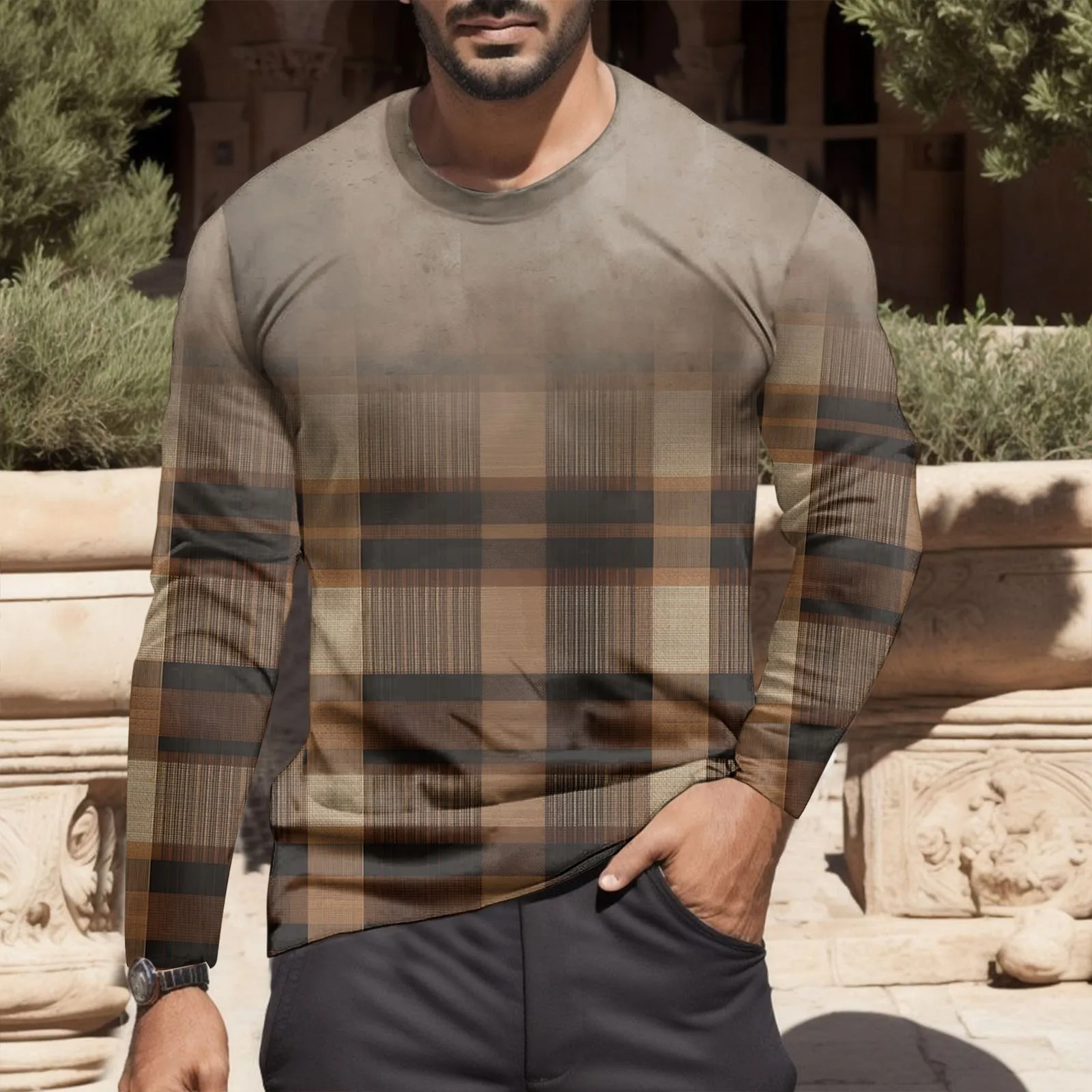 Male Autumn And Winter Fashion Printed Round Neck Long Sleeve T Shirt Retro Full Print Shirts Big And Tall Men’s Plain T Shirts