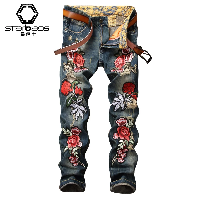 Men’s Jeans on AliExpress Hot selling Italian Design Handmade Embroidered Punk Style Men’s Jeans Rose Mid Rise Casual Pants