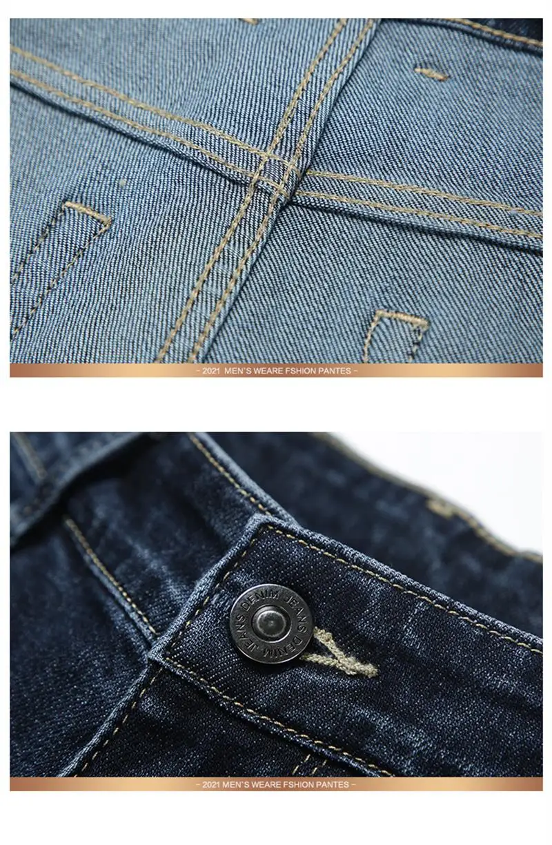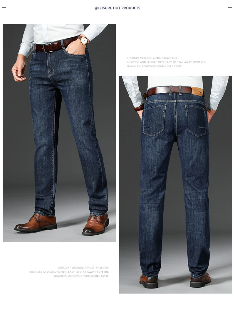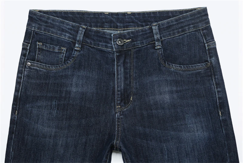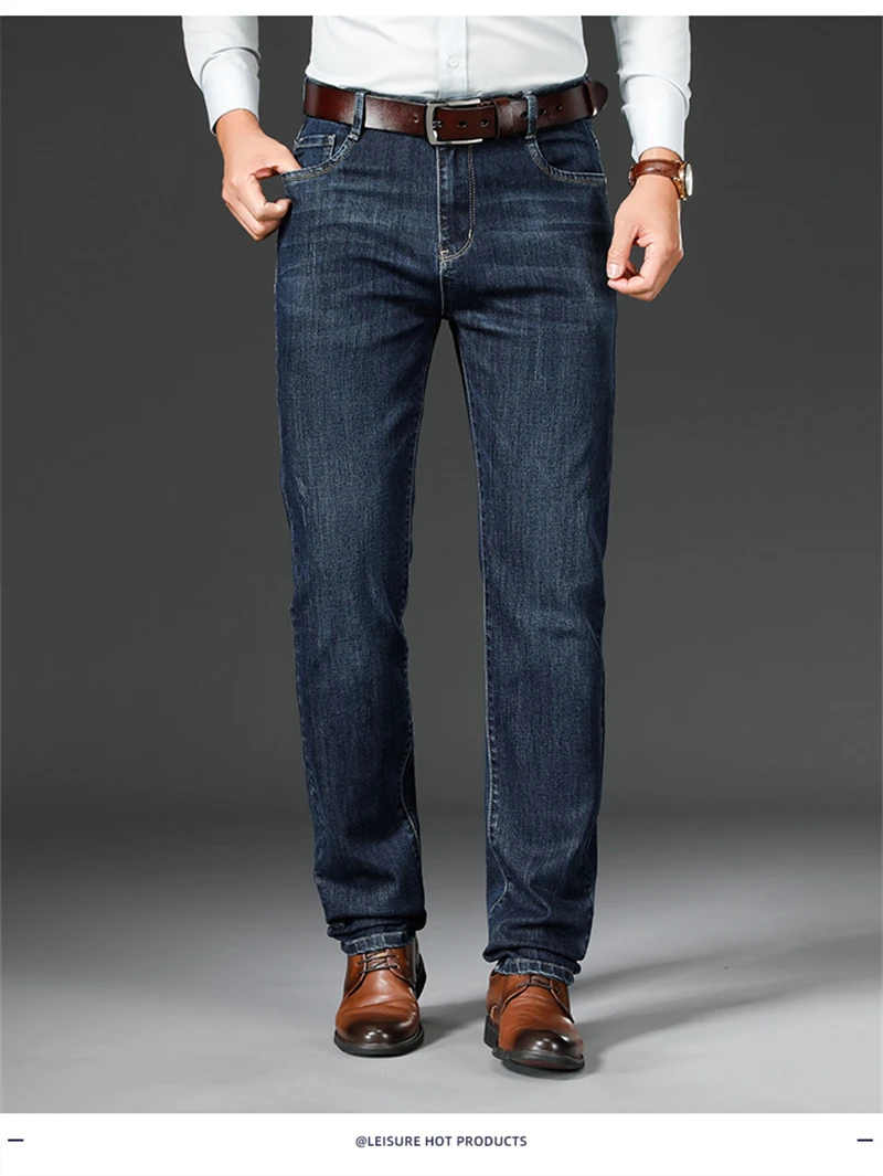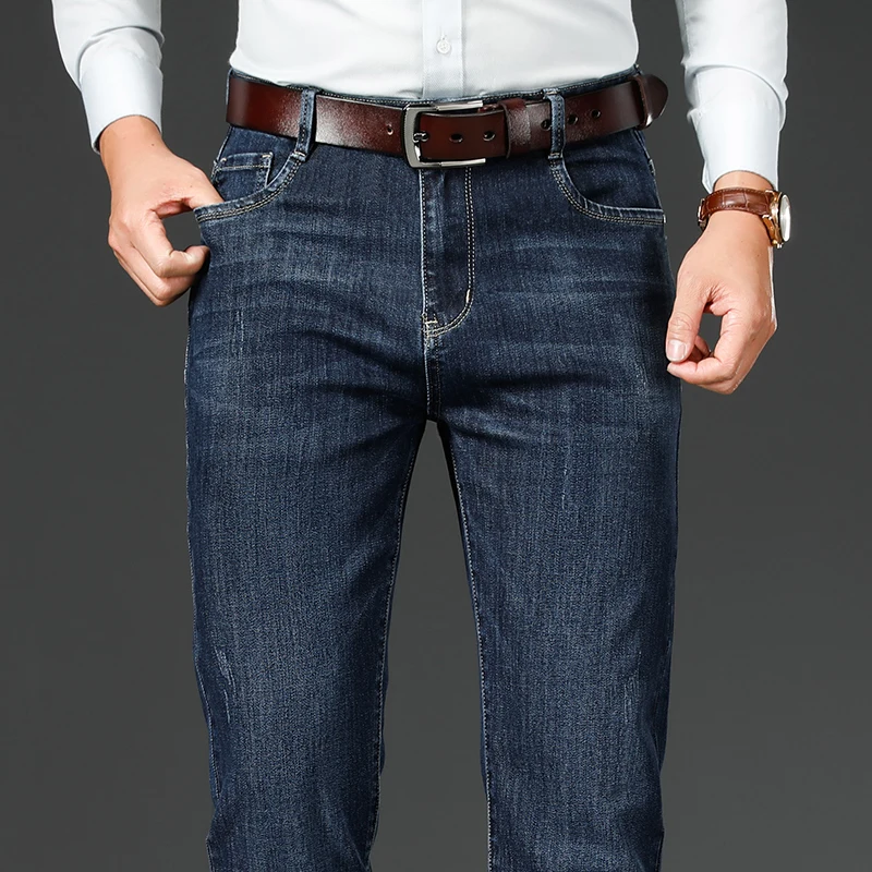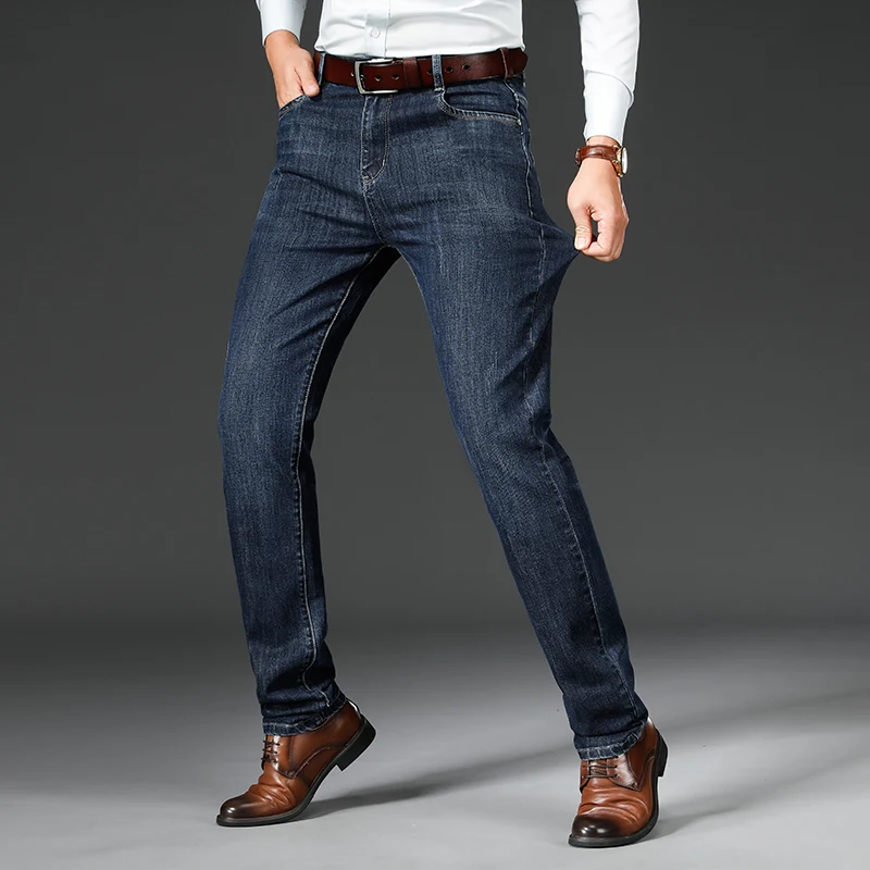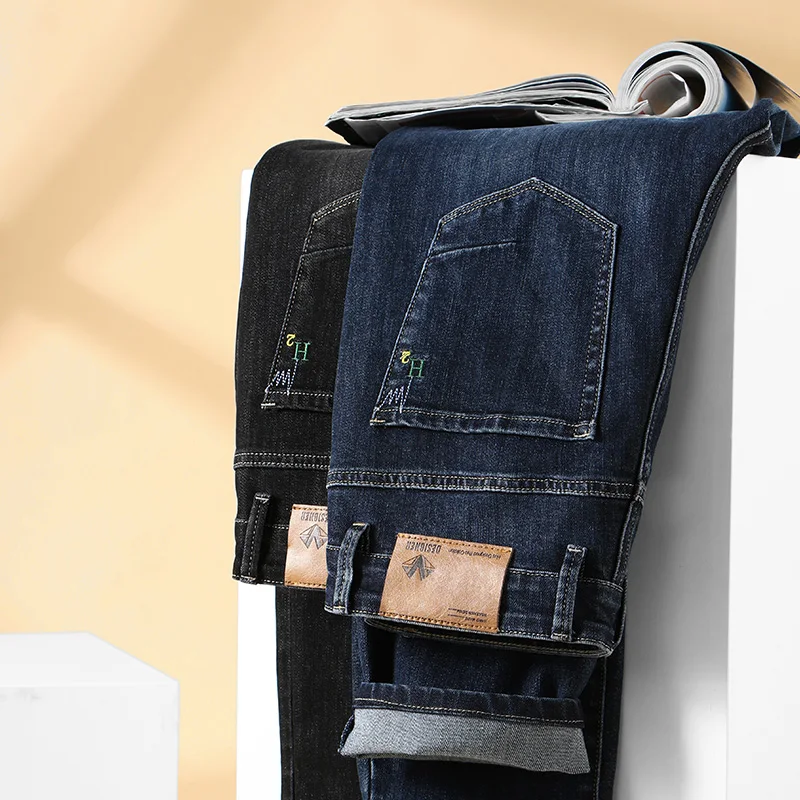 Nice Autumn Winter Fit Straight Stretch Jeans Classic Smart Style Embroidery Men’s Business Casual Jeans Black Dark Blue