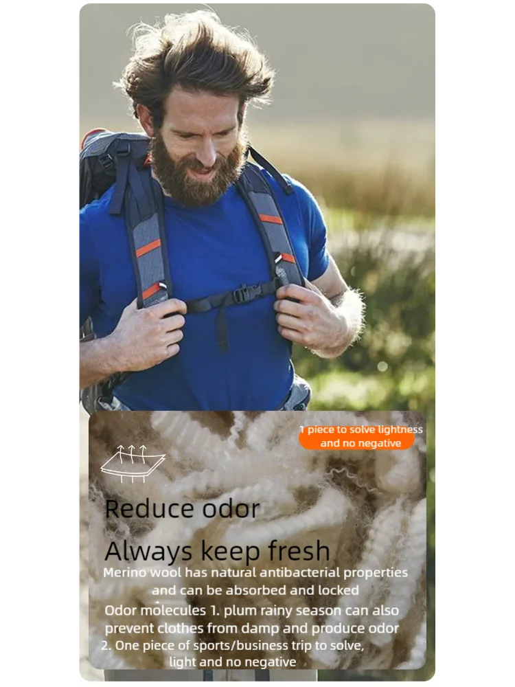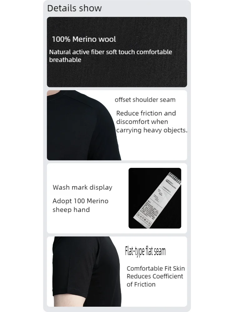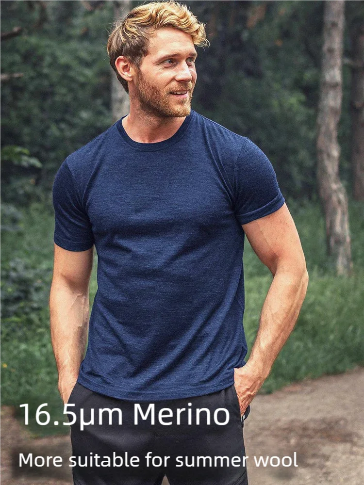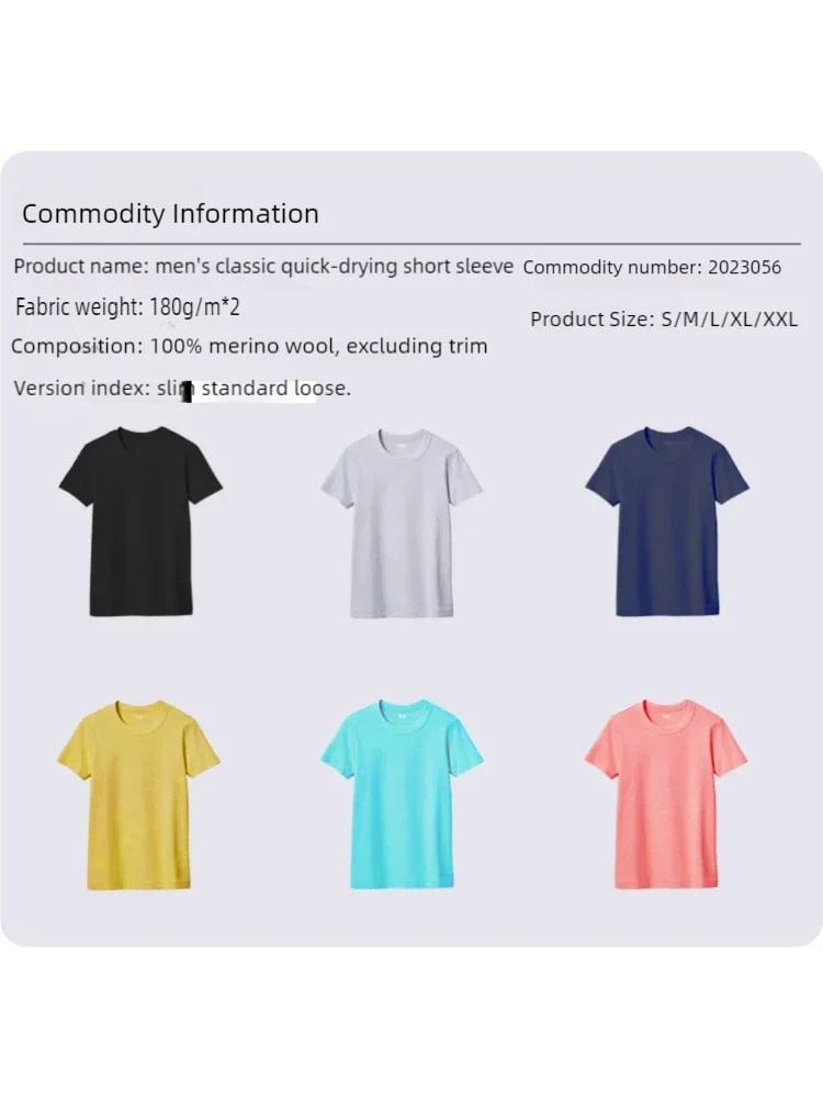 Outdoor summer Merino wool quick-drying clothes men’s short-sleeved running sports Hiking mountain crewneck T-shirt Sun protecti
