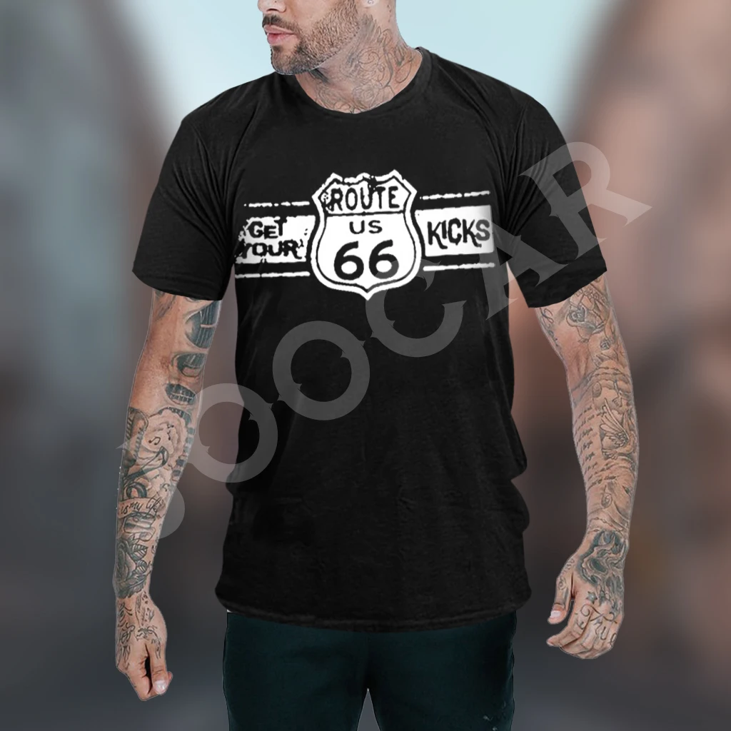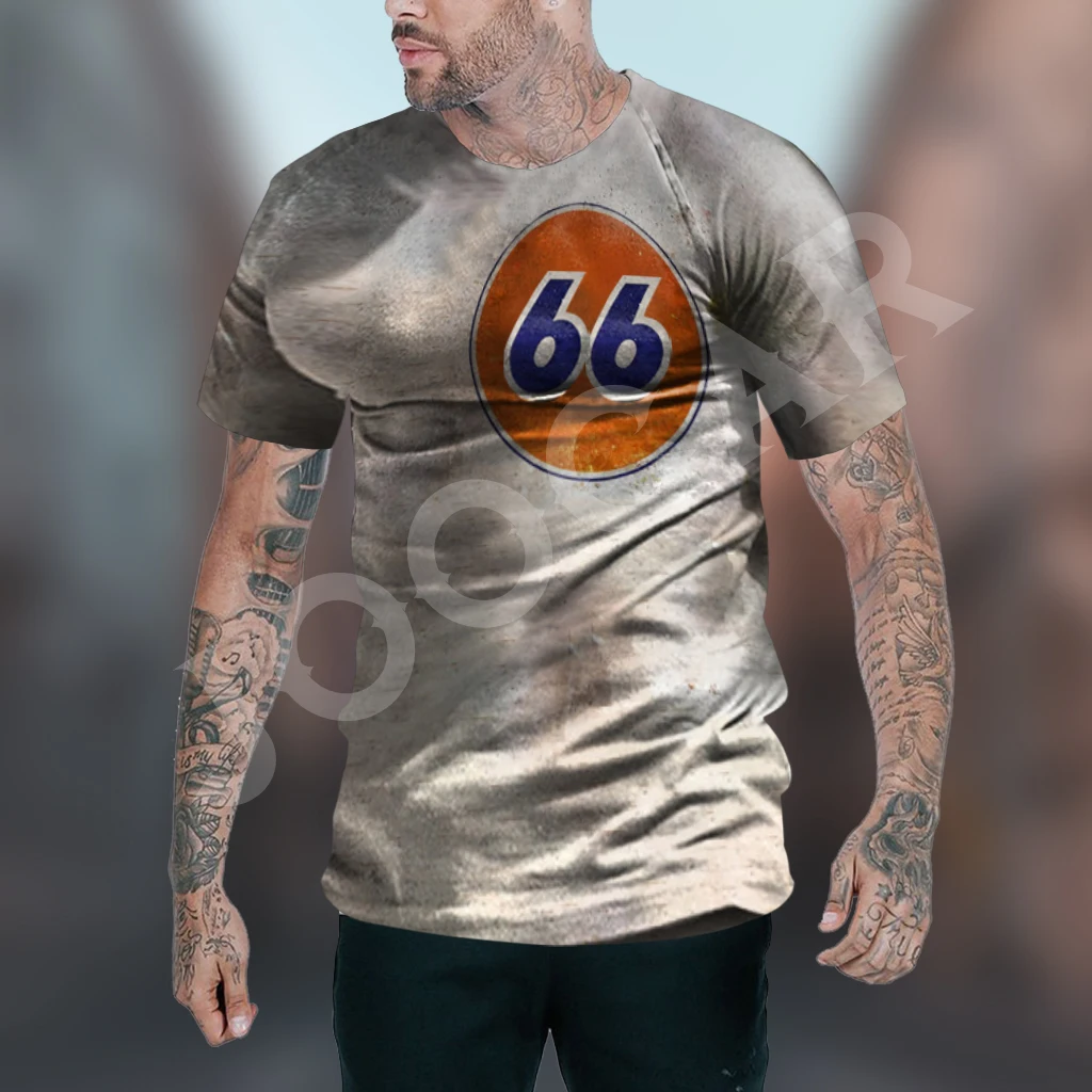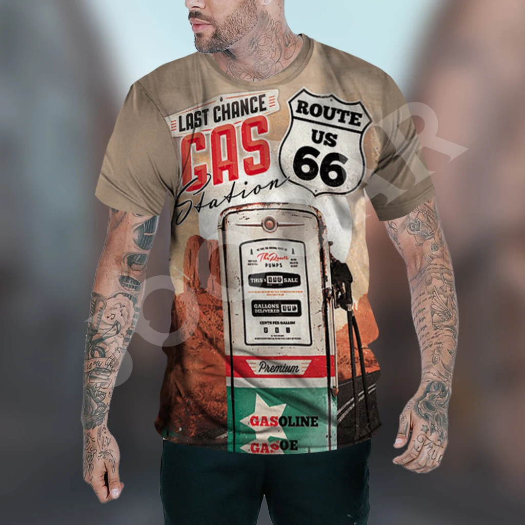 Route 66 Gas Station Men’s Vintage Print Casual Short Sleeve T-Shirt