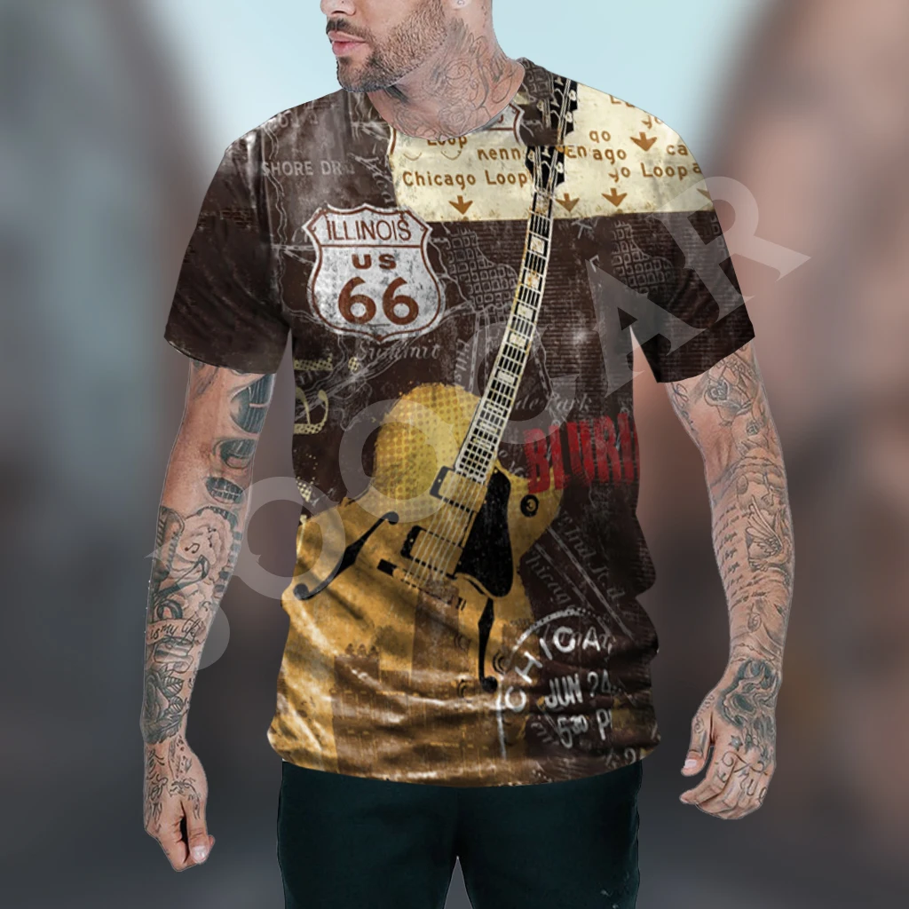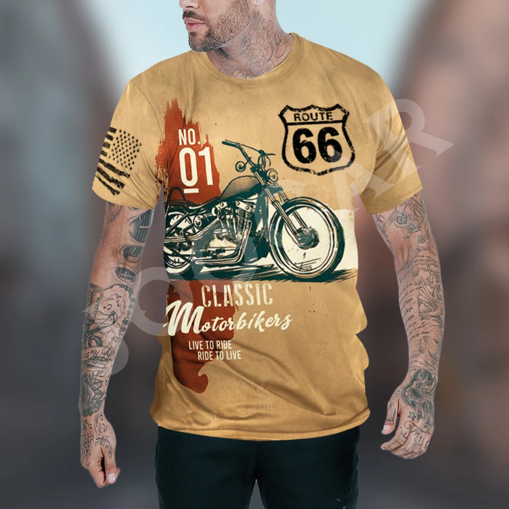 Route 66 Gas Station Men’s Vintage Print Casual Short Sleeve T-Shirt