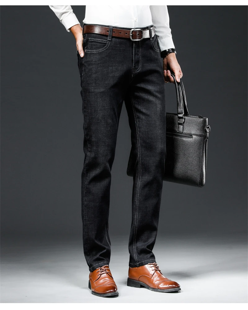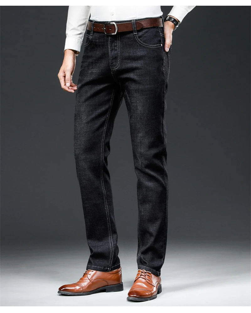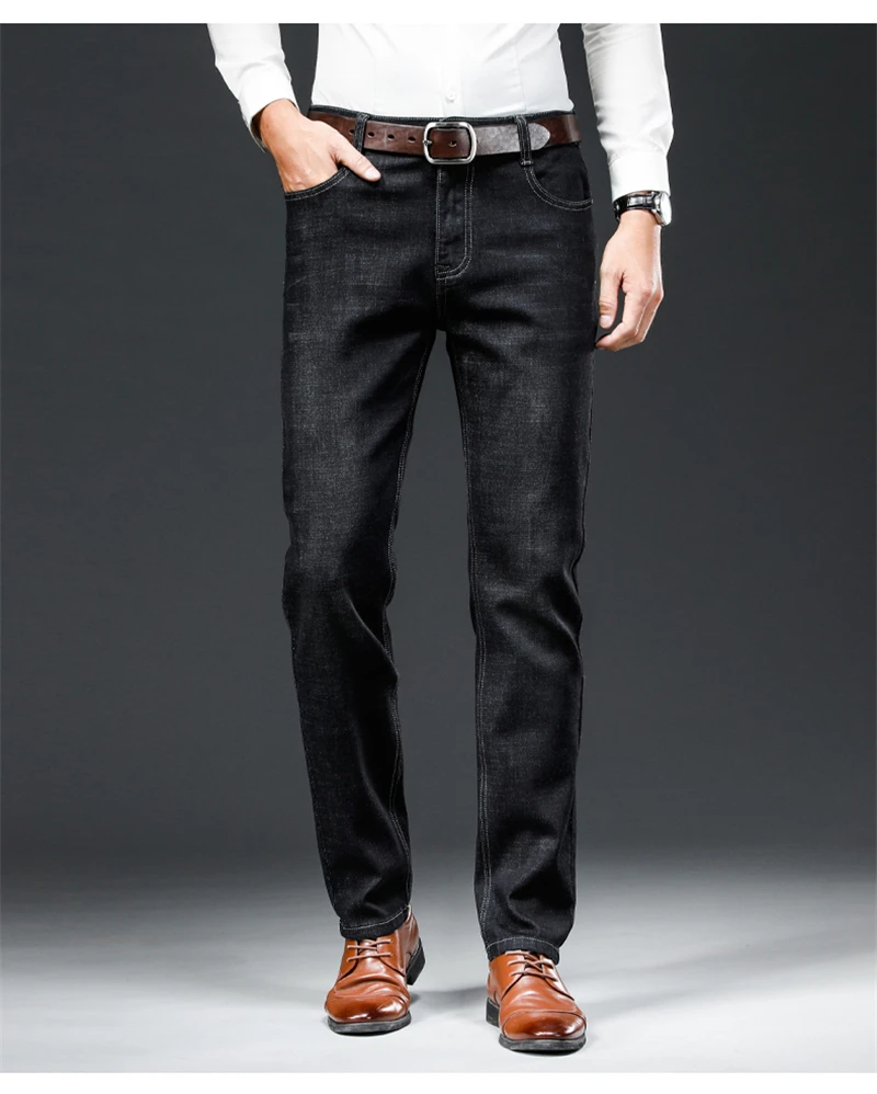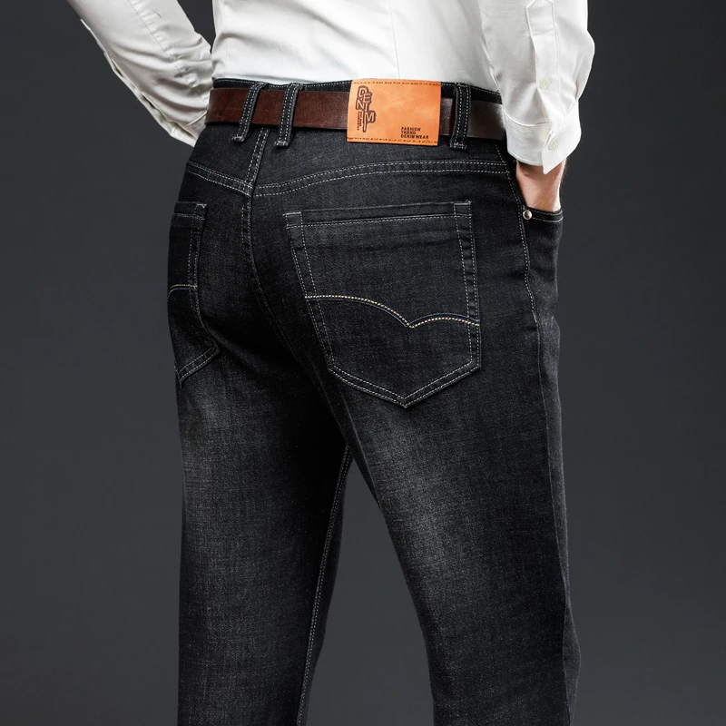 Spring and Autumn Pop Classic Men’s Large Size Jeans Fashion Business Casual Stretch Slim Black Blue Men’s Brand Pants