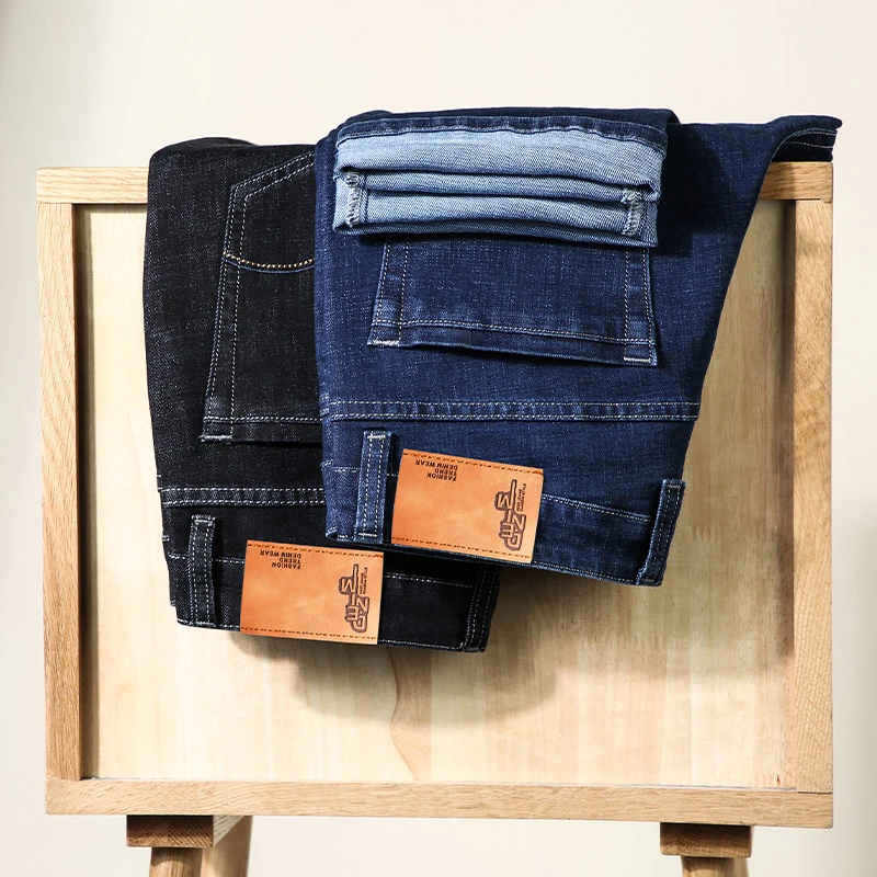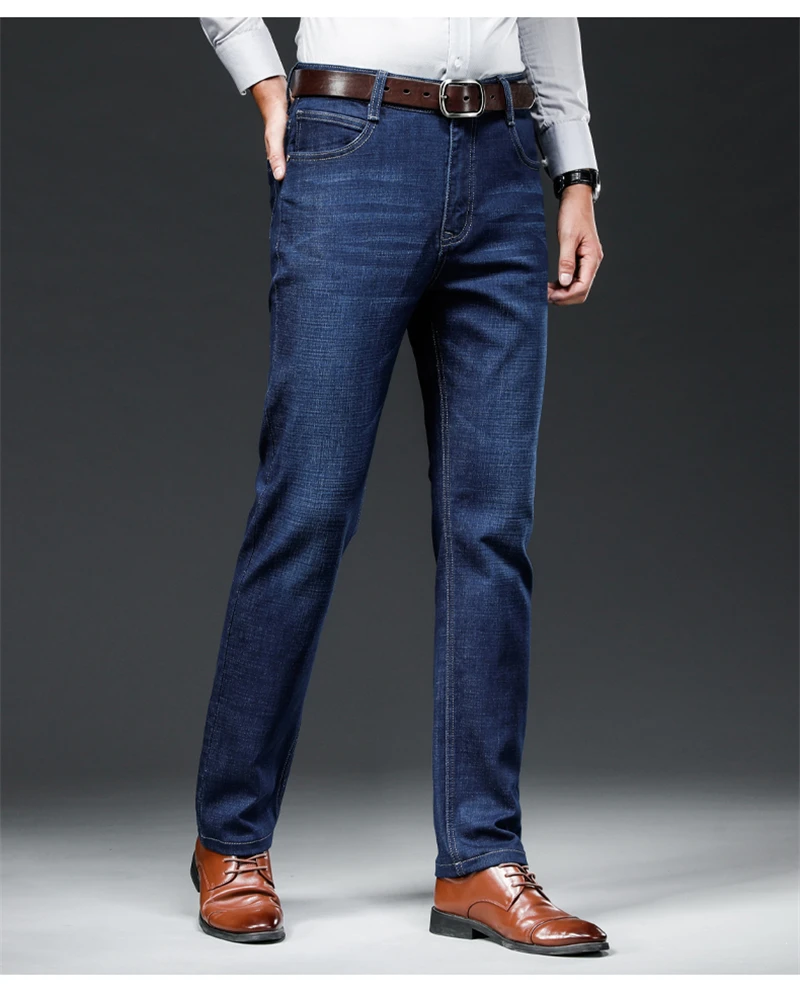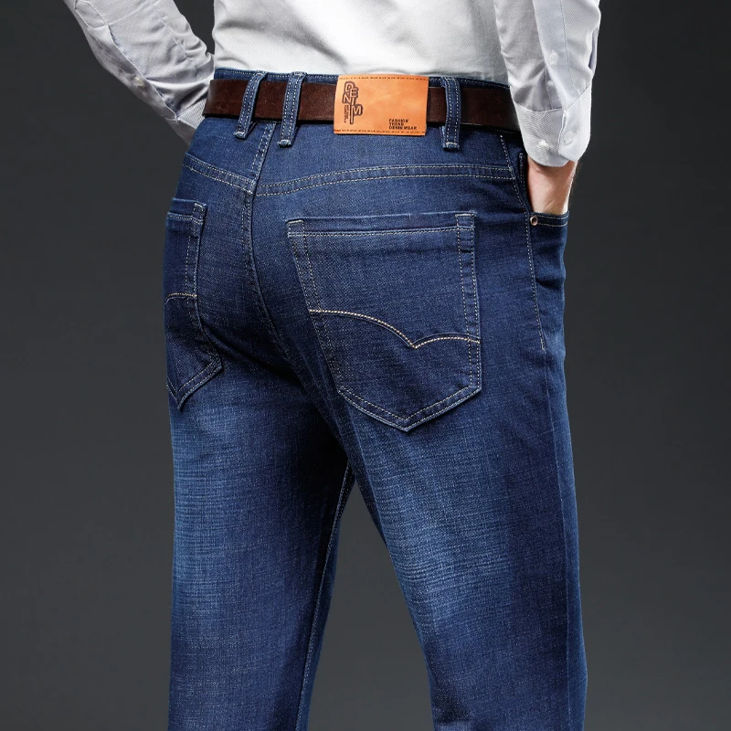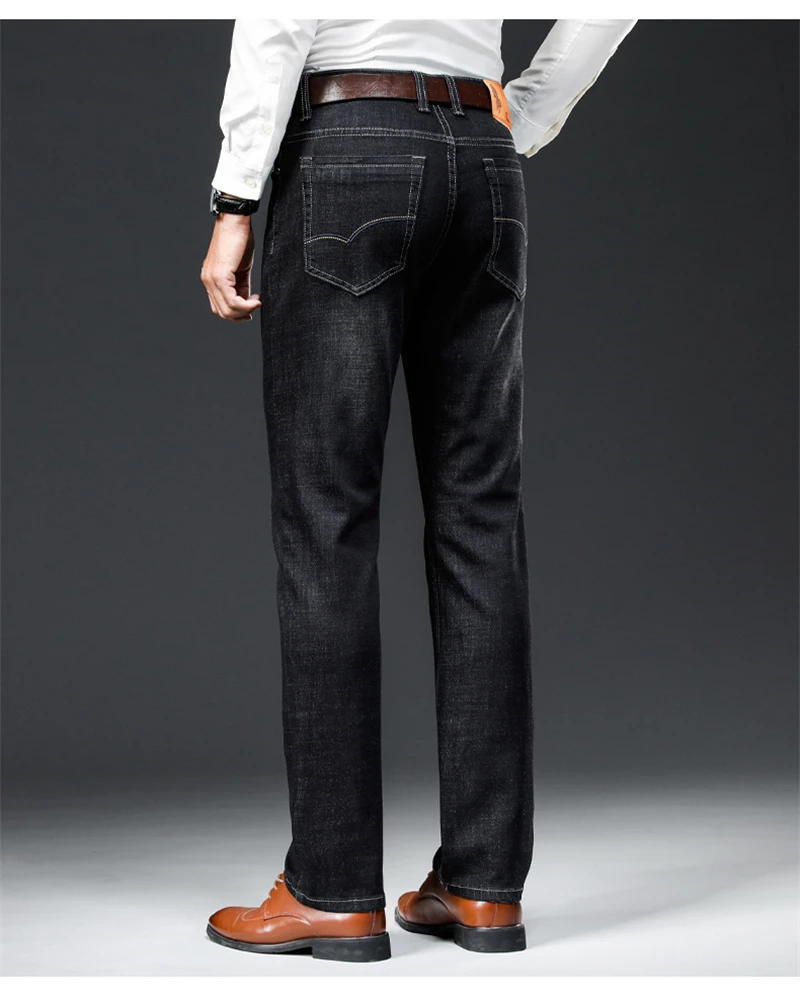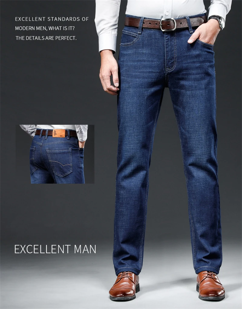 Spring and Autumn Pop Classic Men’s Large Size Jeans Fashion Business Casual Stretch Slim Black Blue Men’s Brand Pants