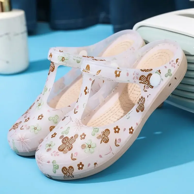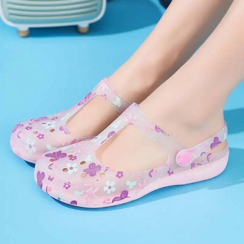Summer Printed Hole Shoes Women Sandals Ladies Jelly Shoes Cool Slippers Women Outer Wear Ladies Covered Toe Sandals