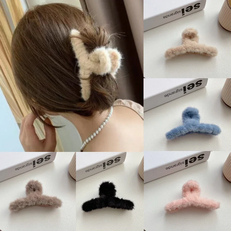 Winter Plush Hair Claw Elegant Acrylic Hairpins Faux Fur Hair Clip Barrette Crab Headwear for Women Girls Hair Accessories
