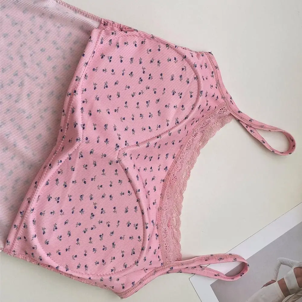 Attributes3 | 2024 spring and summer new pure ice silk pure to girls BM wind lace with floral small suspenders with chest pad top |