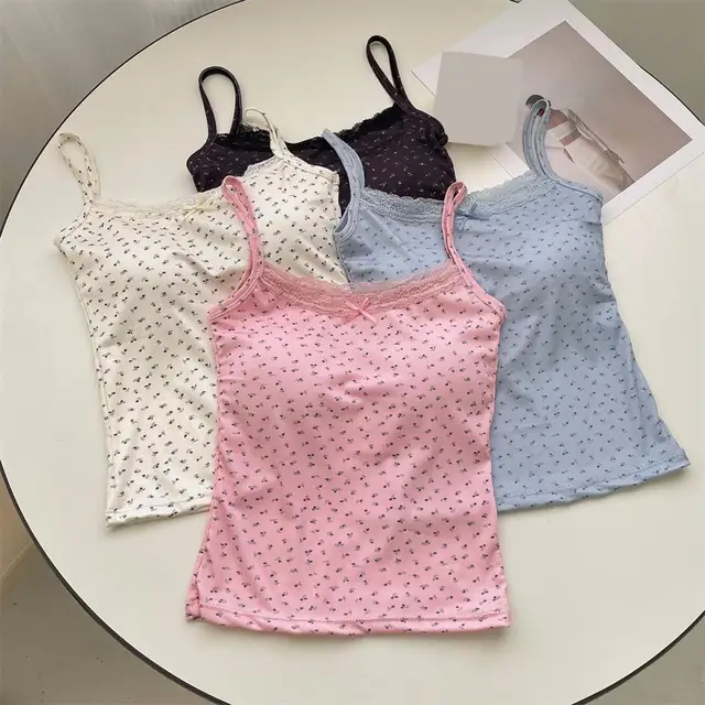 Attributes3 | 2024 spring and summer new pure ice silk pure to girls BM wind lace with floral small suspenders with chest pad top |
