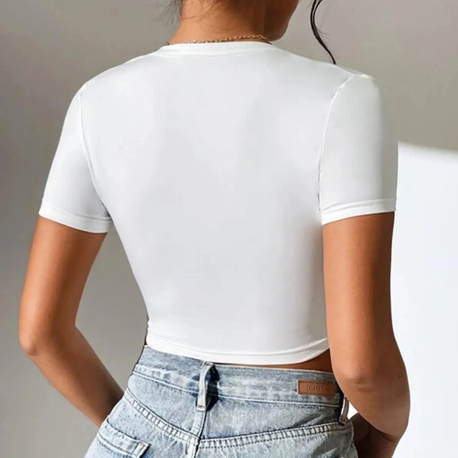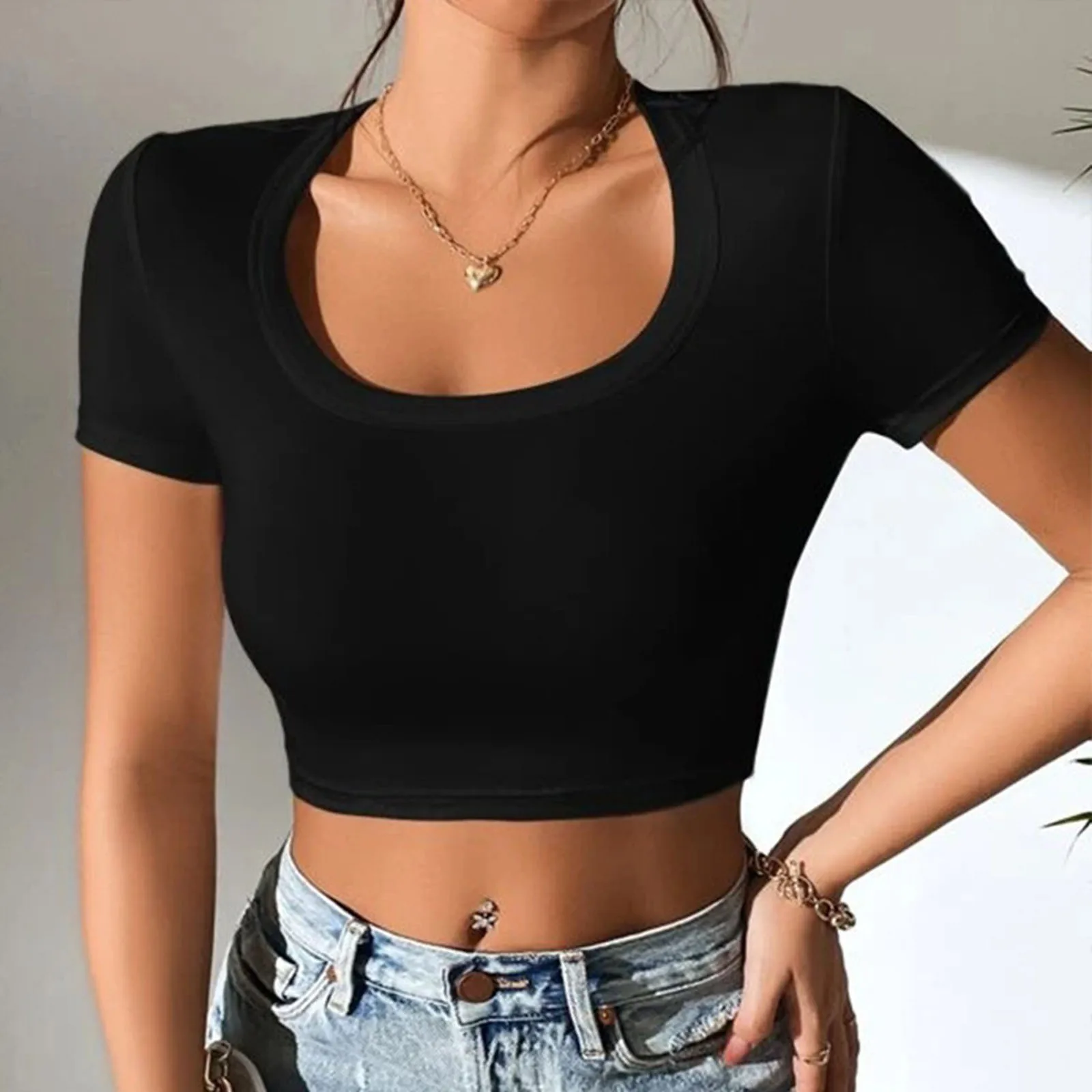 Women Strapless Tank Tops Summer Y2K Tight Fitted Short Sleeve Scoop Neck Crop Tops T-Shirt Tops Fashion Streetwear Outfits